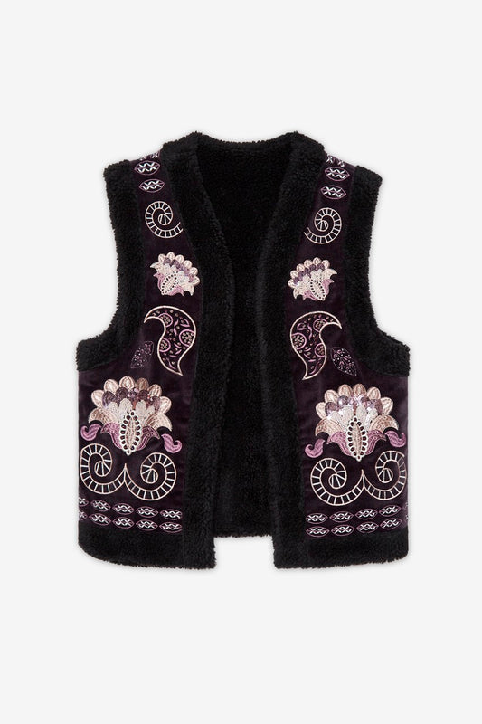 In offertaGilet nero con fiori viola