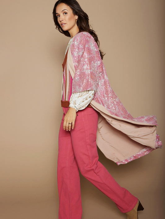 Caftano con paillettes rosa