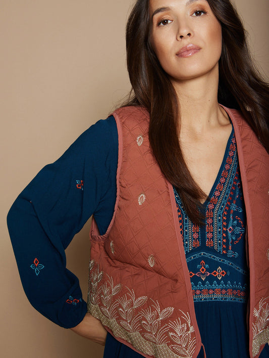 Embroidered quilted vest