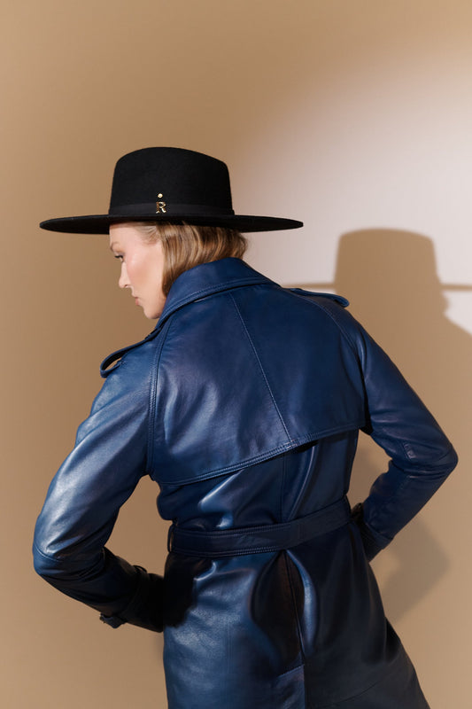 Trench in pelle blu