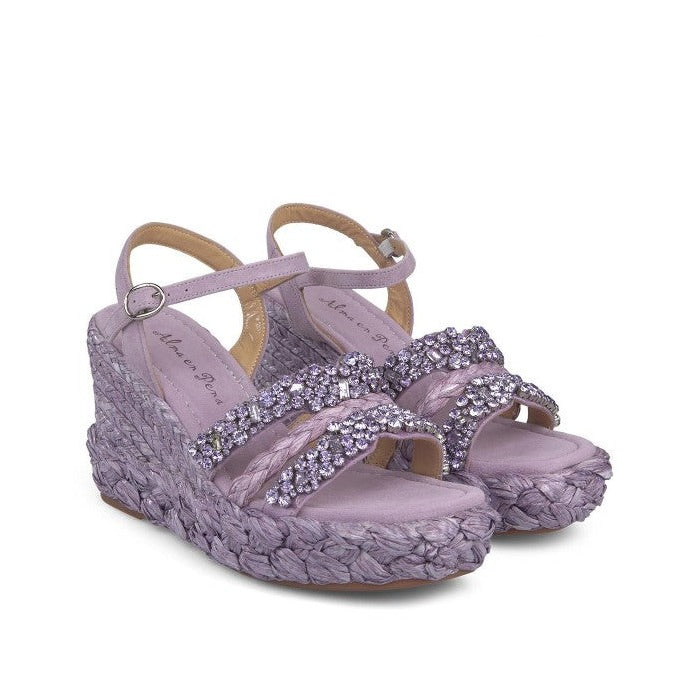 Zeppe con pelle e rafia alte 10cm totali, di cui 3cm plateau.
